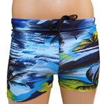 Boxer de bain homme Imprimé palmiers, paysage vacances, mer